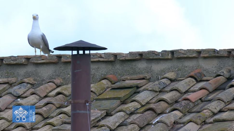 Anche stamani i gabbiani accanto al comignolo hanno accompagnato l’attesa dei fedeli in piazza e di quelli collegati da tutto il mondo.