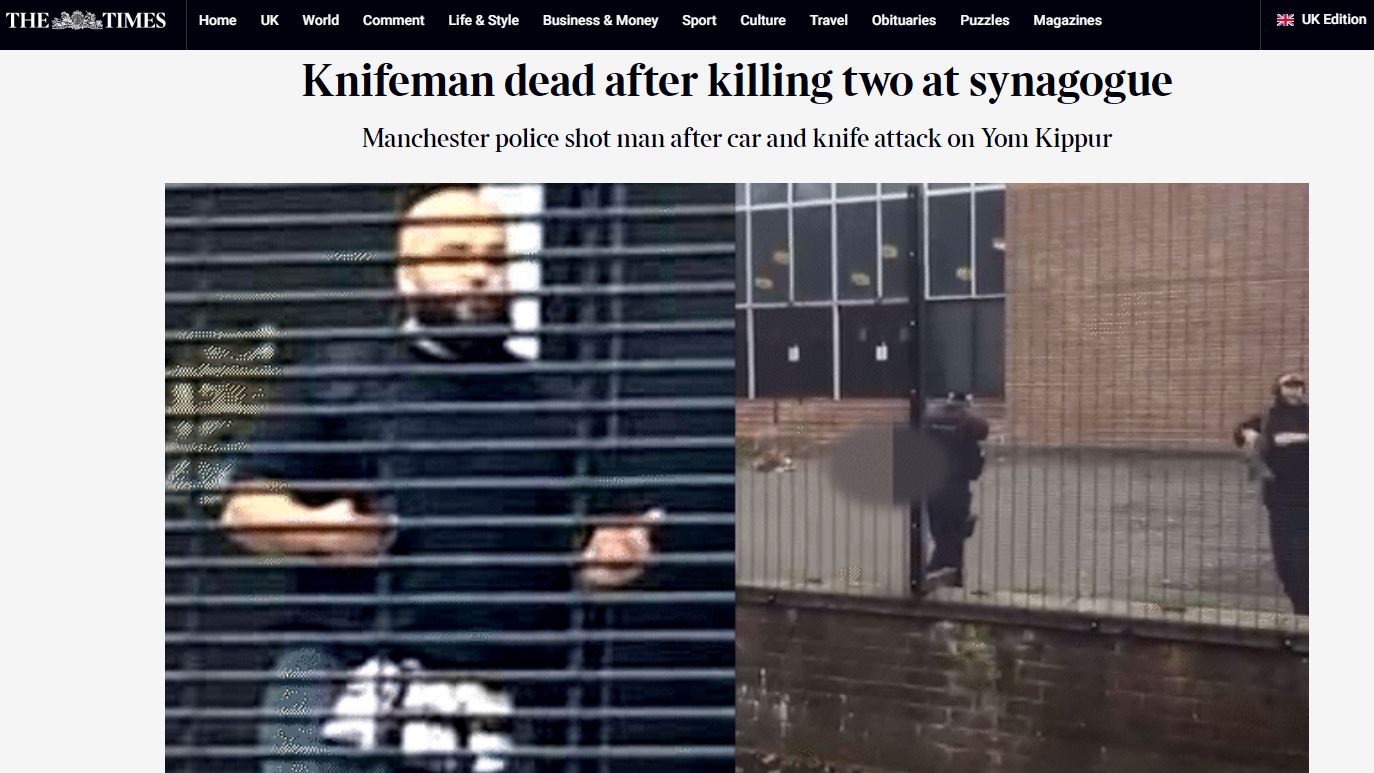 Tre morti e quattro feriti nel giorno dello Yom Kippur a Manchester