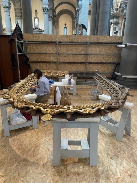 Il dipinto è stato smontato dall’altare, tolto dalla cornice e spostato nel cantiere di restauro creato ad hoc all’interno della basilica, come da richiesta del Parroco di Santo Spirito, in accordo con la Soprintendenza Archeologia, Belle Arti e Paesaggio (SABAP) per la città metropolitana di Firenze e le province di Pistoia e Prato. L’esecuzione del restauro con un cantiere in loco è più appropriata per la conservazione dell’opera che così non subisce particolari cambiamenti climatici e neppure sollecitazioni, dovute al trasporto in un laboratorio esterno.