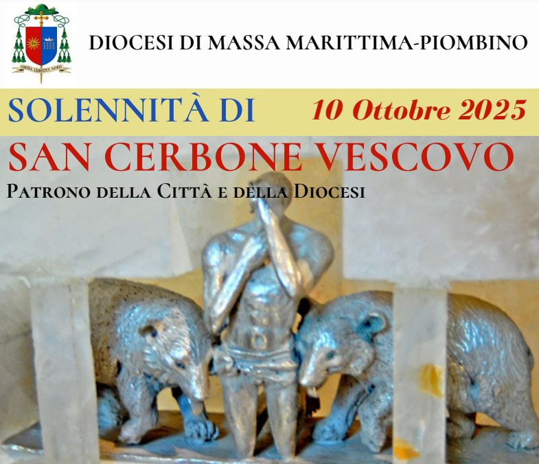 Si avvicina la data di san Cerbone, patrono della diocesi di Massa Marittima e Piombino. Di seguito il programma delle celebrazioni, che si svolgeranno a Massa Marittima il 9 e il 10 ottobre. Quest’anno, presiederà la solenne celebrazione, mons. Bernardino Giordano, vescovo delle diocesi di Grosseto e di Pitigliano – Sovana – Orbetello.