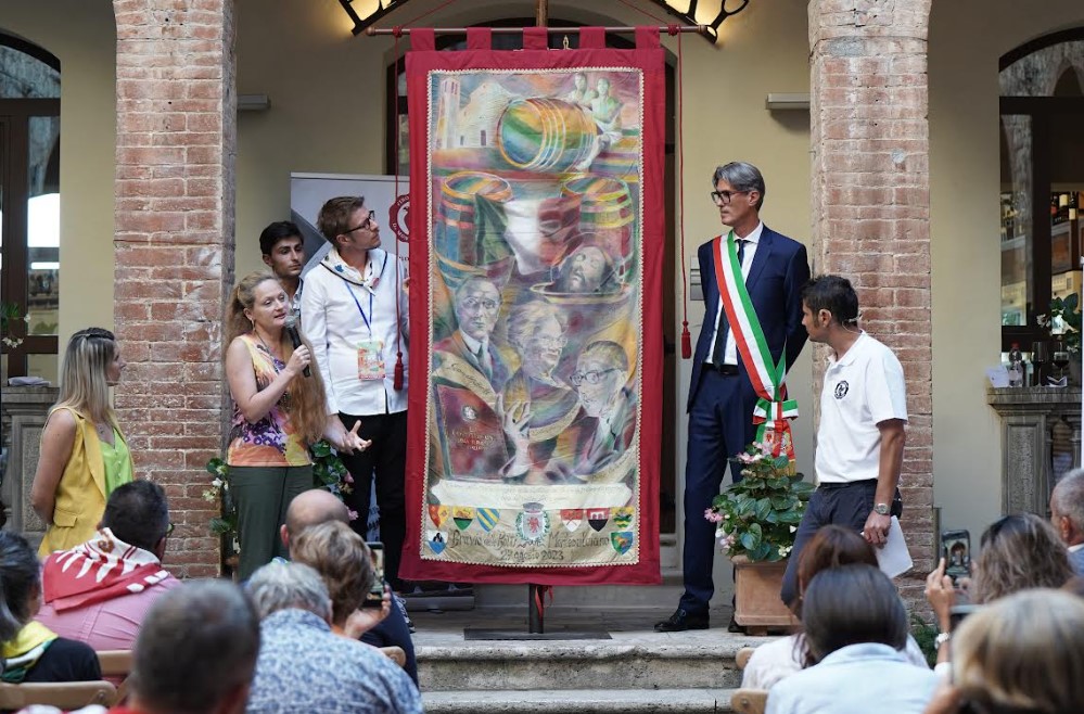 Svelato il panno del Bravìo delle Botti 2023 dipinto dall’artista Paola Imposimato; la contrada di Talosa si aggiudica il concorso “A Tavola con il Nobile”, mentre il Premio Grifo Poliziano va alla Strada del Vino Nobile e dei Sapori della Valdichiana Senese