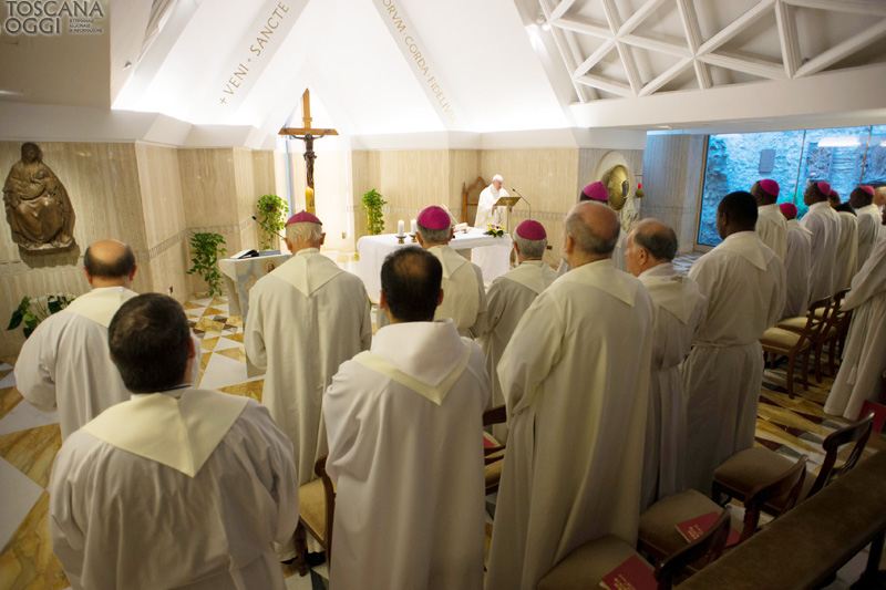 C’è «soltanto un solo oggi, nella nostra vita» e la tentazione è quella di dire: «Sì, farò domani». «La tentazione del domani che non ci sarà», come Gesù stesso spiega nella parabole delle dieci vergini: «Le cinque stolte che non avevano preso con loro l’olio assieme alle lampade, lo vanno poi a comprare ma quando arrivano, trovano la porta chiusa. Francesco fa anche riferimento alla parabola di colui che bussa alla porta dicendo al Signore: ‘Ho mangiato con te, sono stato con te…’. ‘Non ti conosco: sei arrivato tardi…’».