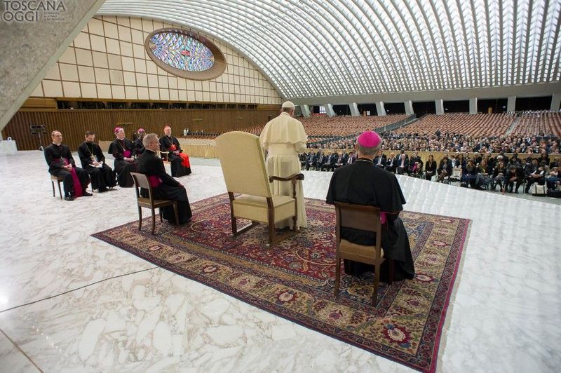 Per l’udienza non si paga: «attenti ai furboni». «Adesso devo dirvi una cosa che non vorrei dirvi, ma devo dirvela». Con queste parole, pronunciate a braccio, il Papa ha concluso l’udienza di oggi. Dopo i saluti ai fedeli di lingua italiana, che come di consueto chiudono l’appuntamento del mercoledì con i fedeli, il Papa ha tirato fuori da una busta un biglietto rosso e ha ricordato, nella sua ultima parentesi a braccio: «Per entrare all’udienza, sia in Aula che in piazza, non si deve pagare: è gratuita, è una visita gratuita che si fa al Papa per parlare col Papa, col vescovo di Roma». «Ho saputo – ha proseguito Francesco – che ci sono dei furboni che fanno pagare i biglietti. Se qualcuno vi dice che per andare in udienza dal Papa c’è bisogno di pagare qualcosa, ti stanno truffando. Stati attento, stai attenta!». «Questo è gratis», ha concluso il Papa: «Qui si viene senza pagare perché questa è la casa di tutti. E chi dice questo e ti fa pagare, è un reato: quell’uomo, quella donna, è un delinquente. Questo non si fa!».