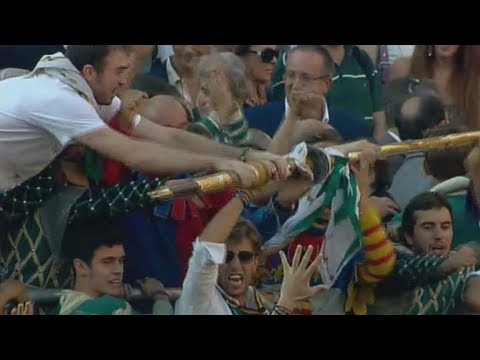 E’ finito il digiuno: il popolo biancoverde, dopo tre anni, torna ad abbracciare la Lancia d’Oro. La 33esima.Si è spezzata la catena di vittorie dei “ragazzi terribili” di Porta Santo Spirito, Elia Cicerchia e Gianmaria Scortecci, che si sono aggiudicati le ultime tre edizioni della Giostra del Saracino.Questa, la 126esima, dedicata a Giuseppe Verdi, la portano a casa due veterani: Stefano Cherici ed Enrico Vedovini, marcando rispettivamente un 5 ed un 4. Nove punti complessivi, che bastano a dare la spallata al Quartiere della Colombina, che si ferma ad un 4+4.Servizio di Beatrice Bertozzi. Immagini Team TV. TSD Notizie Flash del 2 settembre 2013.